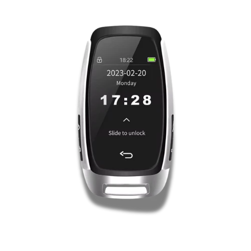 Mit seiner silbernen Rahmenoptik, dem großen Touchdisplay und der „Slide to unlock“-Funktion ist dieser Smart Key die perfekte Kombination aus Eleganz und Technologie. Ideal für sportliche Fahrzeuge und Nutzer mit Sinn für Stil und Funktionalität.
